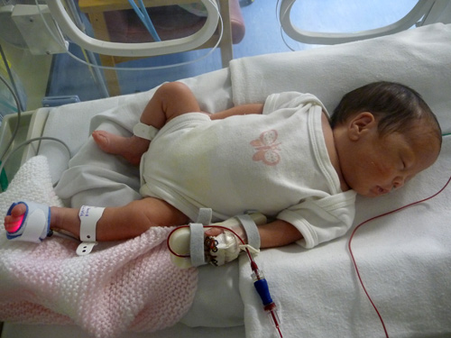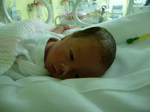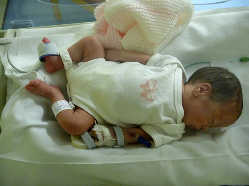 Much more positive is that Monica is having a lot fewer desaturations and bradycardias. Her feeds have also been increased again; we'll not be able to pick her up quite so easily soon ;-)