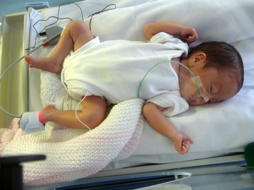 Monica's feeds have now been increased again as she has put on quite a bit of weight during the last week. She is now a huge 1.6Kg (3.52 Lbs / 3 lbs, 8 oz) which is absolutely brilliant and she certainly feels a lot less fragile now (but we're still ultra careful with her nevertheless). She will continue to be fed through the tube in her nose until she learns to co-ordinate swallowing her milk herself.